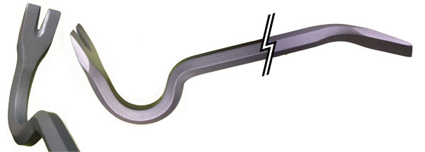 Micon Products is the manufacturer of high quality goose neck nail pulling bars. Every nail puller is made of hardened 1″ hexagon carbon steel with a forged 30 degree chisel on one end and a goose neck slotted chisel on the other end. The most common bar lengths are 4′, 5′, 6′. Other nail puller bar lengths and material sizes are available on request.
