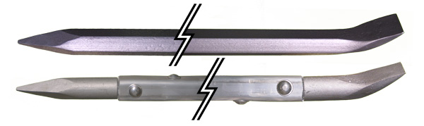 Micon Products is the manufacturer of high quality digging bars. Every digging bar is made of hardened 1″ hexagon carbon steel. The most common bars have a forged moil point on one end and a 2″ wide chisels on the other end. Other tip styles are available on request. The most common bar lengths are 4′, 5′, 6′. Other digging bar lengths and material sizes are available on request.