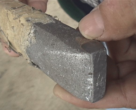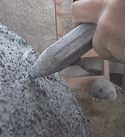 This particular Pitching Tool (the one with the square tip on the left) is used to square up oddly shaped size granite boulders. This Pitching Tool is perfect for stone carving, creating squared blocks for use in House Facings, Wall Designs or Garden Walkways.