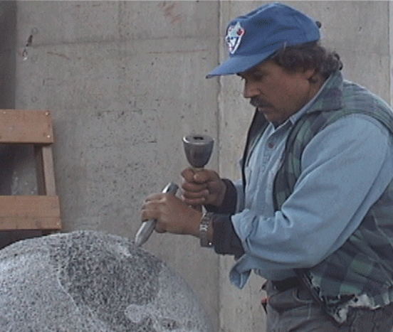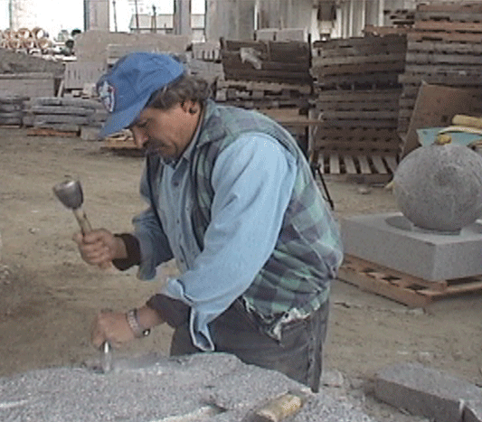 We didn’t have to go far to find someone stone carving with Rebit Chisels. Noe Costa has been using them for years and has nothing but praise for the Rebit Line of Chisels. The globe that Noe is working on is carved from a 24″ cube of granite. Rebit Stone Carving Tools were used exclusively to create the globe shape and countoured effect of the continents.